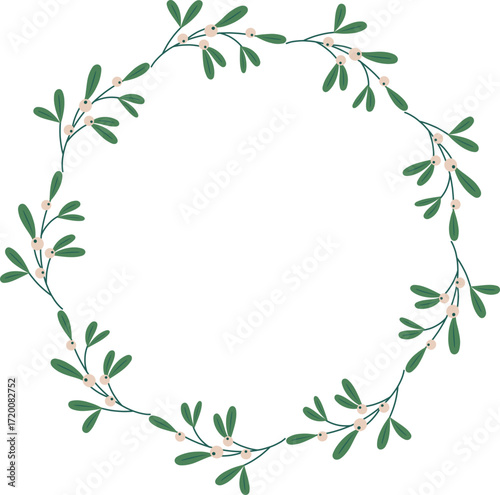 Fototapeta premium Mistletoe wreath flat stock Illustration. Transparent background.