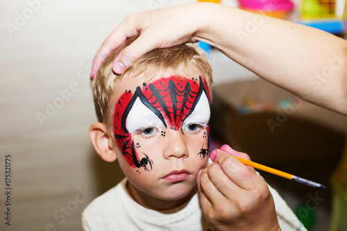 © nata_zhekova, Obraz premium Mistrz robienia makijażu wodnego na twarzy chłopców