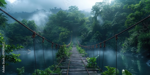 Obraz premium Misty Autumn Bridge in Colorful Forest