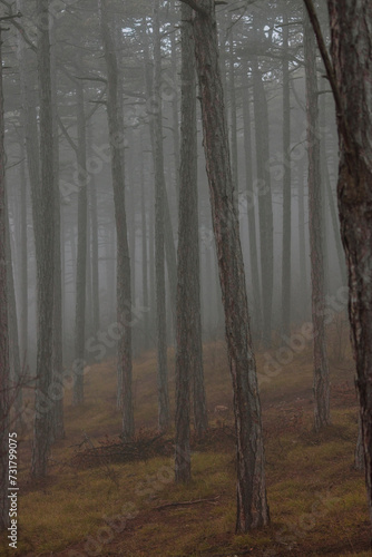 © babaroga, Naklejka premium misty autumn forest in the morning