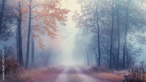 © Ira, Fototapeta premium Misty autumn forest path. (1)