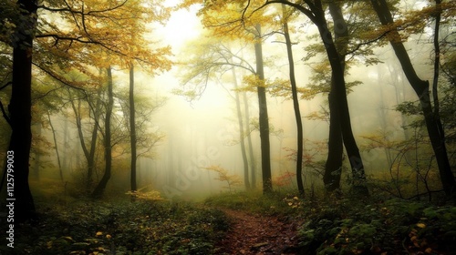 © Misdi, Fototapeta premium Misty autumn forest path. (12)