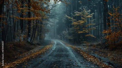 © MINHOO, Fototapeta premium Misty Autumn Forest Path