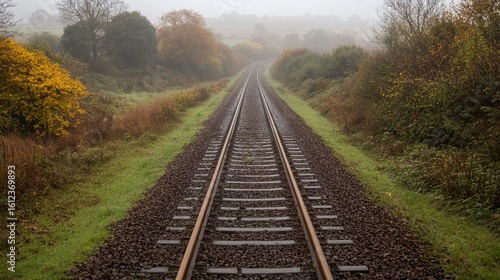 © Isnaini, Fototapeta premium Misty autumn railway track