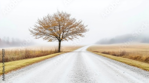 © Giman, Fototapeta premium Misty autumnal country road with solitary tree
