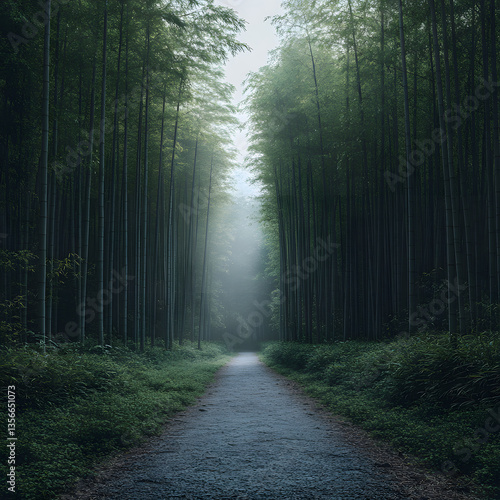 © karonaro, Fototapeta premium Misty bamboo forest path