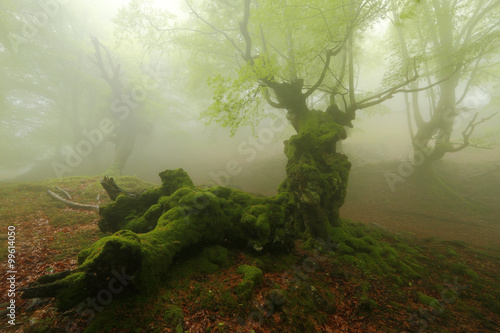 Fototapeta premium Misty beech wood in Orozko (Biscay, Basque Country)