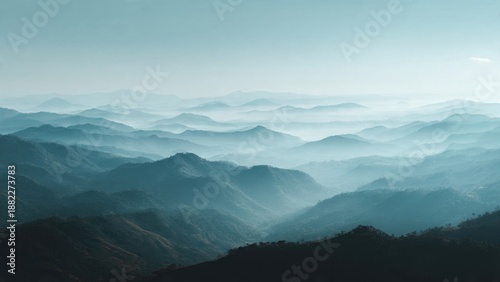 © darshika, Fototapeta premium Misty Blue Mountain Landscape