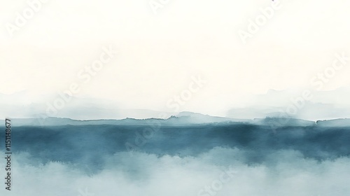 Fototapeta premium Misty blue mountain landscape painting. (1)