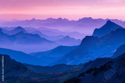 © ZeeZaa, Fototapeta premium Misty Blue Mountain Layers at Sunrise