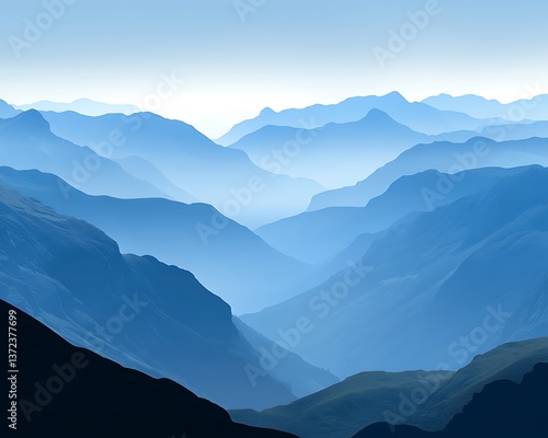Fototapeta premium Misty blue mountains layered with atmospheric perspective forming a vista