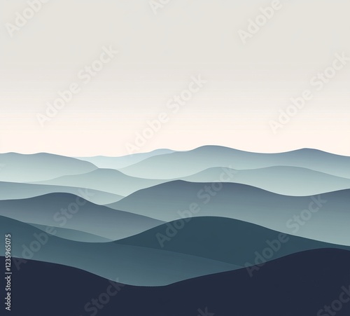 © artwiyanastudio, Fototapeta premium Misty Blue Mountains, Sunrise, Landscape, Serenity, Poster
