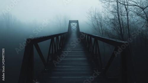 © musa, Obraz premium Misty Bridge Path Through Woods (1)