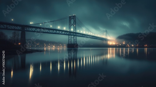 © วรรณภา มะโนศรี, Fototapeta premium Misty Bridge Reflections at Night