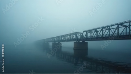 Naklejka premium Misty bridge vanishing into fog, eerie atmosphere, tranquil yet mysterious,...