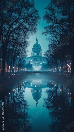 © Xion, Obraz premium Misty Capitol Reflection at Night