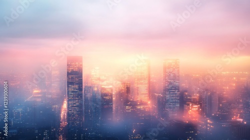 Fototapeta premium Misty City Skyline at Sunset