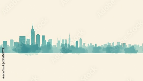 Obraz premium Misty Cityscape Abstract Banner Background Header Wallpaper, Dreamy Minimal Urban Design
