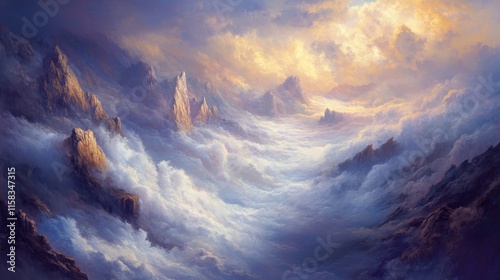 © Alicea, Obraz premium Misty Cliffs with Rolling Fog in Dramatic Sky