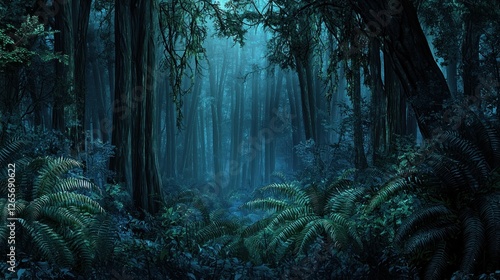 Fototapeta premium Misty, dark forest path, tranquil scene