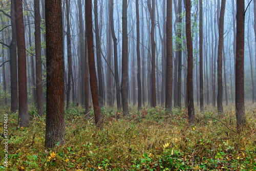 Obraz premium misty endless forest in fall season