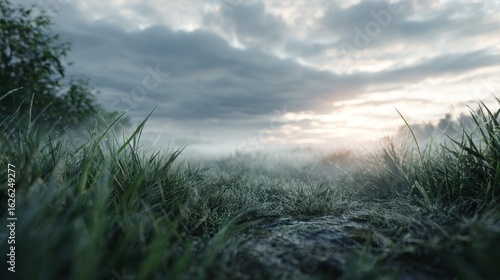 © supriyatno, Naklejka premium Misty field sunrise