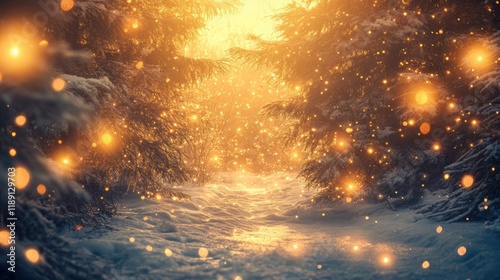 © Joyce, Naklejka premium Misty foggy winter forest with snow covered trees.