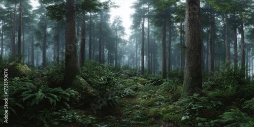 © HDR Image Creator, Fototapeta premium Misty forest adventure enchanted woods hdr panoramic landscape tranquil environment