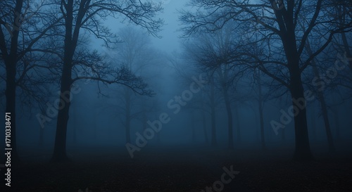 © Ulfa, Fototapeta premium Misty forest at dawn
