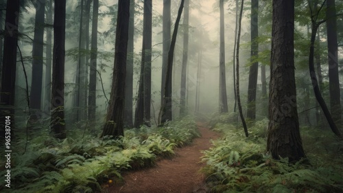 © Saad, Obraz premium Misty Forest Backdrop Vintage Camera Highlights Photography