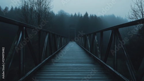 Obraz premium Misty Forest Bridge Path