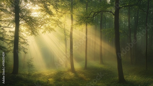 © Kopgz-41, Obraz premium Misty Forest Dawn: Breathtaking Nature Landscape Photography