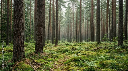 Fototapeta premium Misty Forest Floor with Moss and Ferns