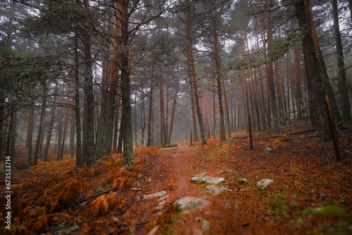 Fototapeta premium Misty forest in fall colors.