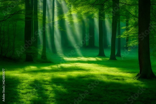 © Farwa, Obraz premium misty forest in the morning generated by AI technology