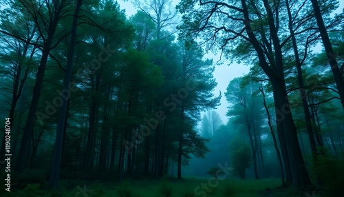 © Justin, Obraz premium Misty Forest Landscape in Twilight