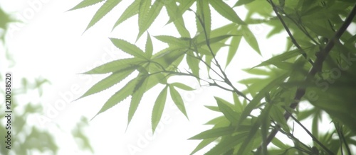 Naklejka premium Misty forest leaves backlit, sunlight, nature