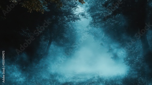 © Nuttapong, Obraz premium Misty Forest Path.