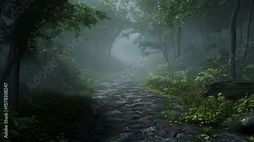 © akkun, Obraz premium Misty forest path