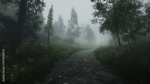 © akkun, Obraz premium Misty forest path