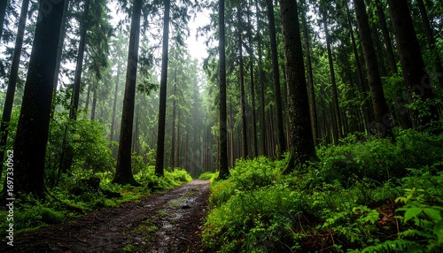 Obraz premium Misty forest path (1)