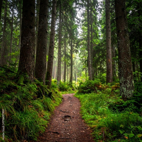 Obraz premium Misty forest path