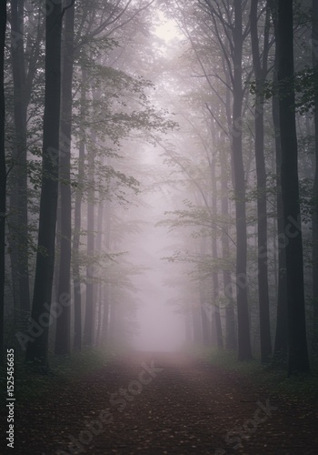 © ASTERISKS, Fototapeta premium Misty Forest Path: A Dark And Mysterious Atmosphere