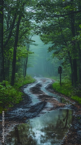Obraz premium Misty Forest Path After Rain.