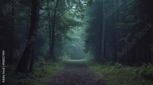 Fototapeta premium Misty Forest Path: An Eerie Walk Through Nature