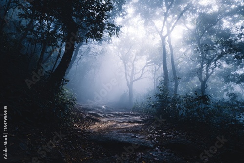© pamungkas, Fototapeta premium Misty forest path at dawn (1)