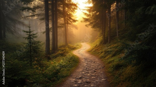 © SlashStd, Fototapeta premium Misty forest path at sunrise. (2)