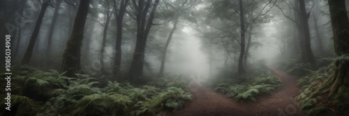 Naklejka premium Misty forest path leads to a mysterious adventure