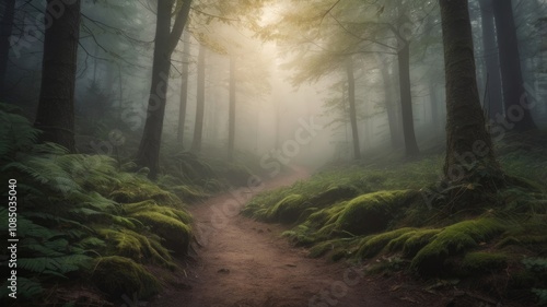 © Reazy Studio, Obraz premium Misty forest path leads to a mysterious adventure