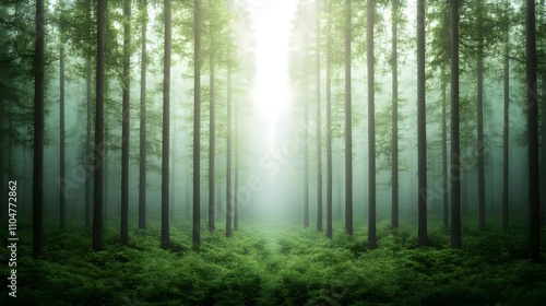 © terat, Fototapeta premium Misty Forest Path Sunlight